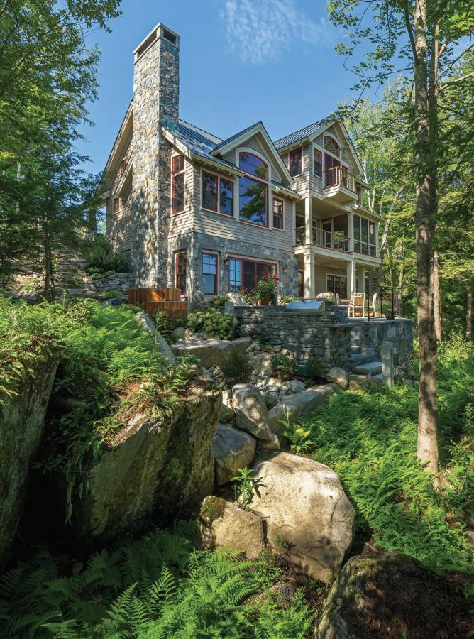 As the chief executive officer of a Fortune 500 financial corporation, Margaret has a very busy professional life, while Jerry works long hours with a four-hour daily commute to and from New York City. They needed a haven where they could unwind with family and friends—the more the merrier. In 2012, Margaret and Jerry bought a home perched on the banks of Lake Sunapee, adjacent to a rocky, narrow lot that was considered virtually unbuildable.