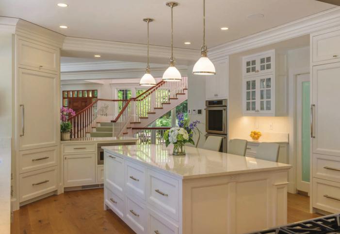 Bonin designed the kitchen, great room and dining alcove to all connect. This was a request from the couple, who wanted to be able to work in the kitchen without being isolated from family members and guests.