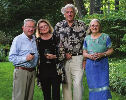 Left: Last summer, homeowners Bruce and Sally Larsen (left) enjoyed a glass of wine with garden designer Gordon Hayward and his wife Mary Hayward.