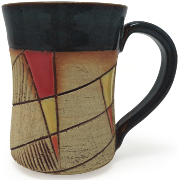 Enjoy a hot drink in Sibel Alpaslan’s “Su Yolu” ceramic mug—bright, geometric and textured with lines.