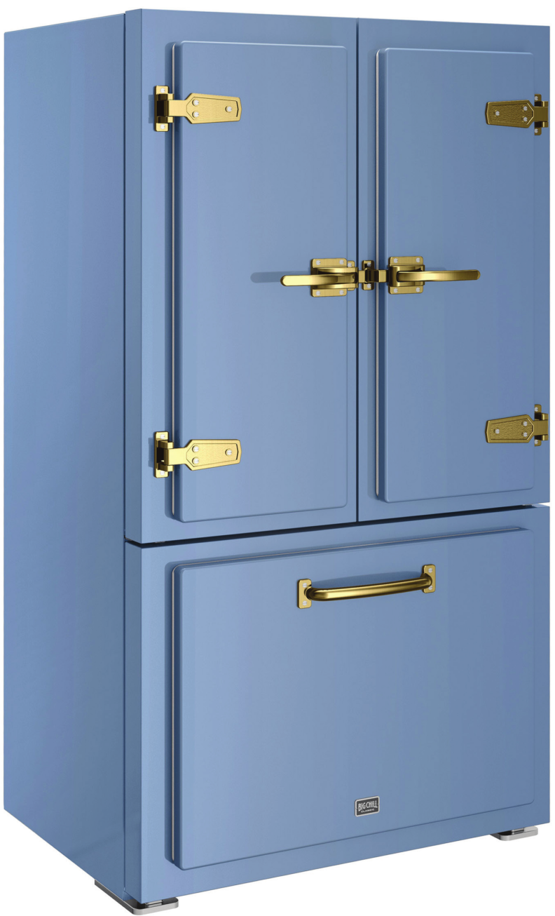 The Energy Star-rated Classic fridge in French blue with brushed brass trim makes the perfect complement to any elegant kitchen.