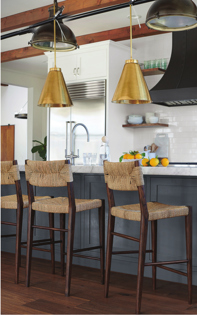 Add natural style with handcrafted solid ash Portside counter stools with gentle curves and hand-wrapped seagrass seat and back.