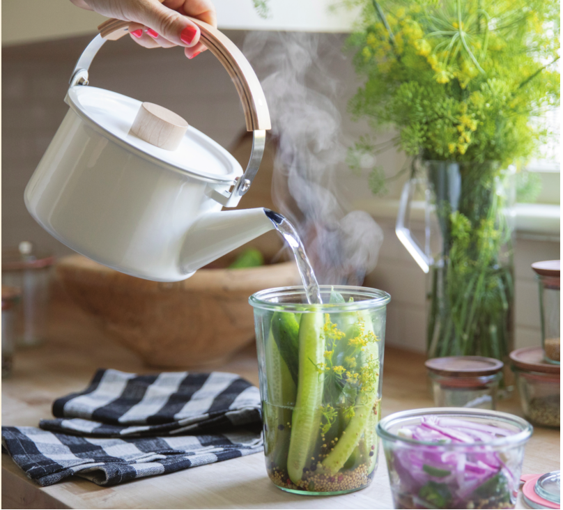 The clean lines and peaceful simplicity of this Japanese enamel kettle—featuring a beech wood handle and maple knob lid— bring beauty and function to any kitchen. Schoolhouse schoolhouse.com
