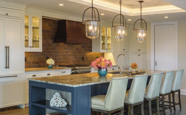 “We painted the kitchen island French Beret blue, a color from the cabinetmaker, Kountry Kraft,” Page says.