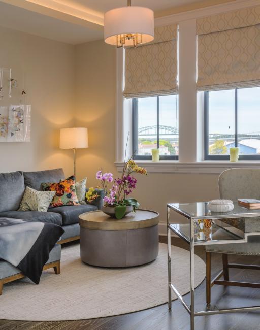 “Working with everyone to develop and furnish our new home, we found just the right mix of styles for us,” Jess says. “I love all of the different perspectives and varying city views offered from each of the windows. Paul and I are grateful to be here and enjoy being an integral part of the Portsmouth community.” NHH