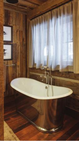 Additionally, the St. Marys added their own subtle design touches to bring everyone together. The downstairs bar seats people on both sides, and the requisite sinks were moved to the wall. The result is the feel of an intimate pub. For the big porch dining table, they had a custom table made, narrowing the width to encourage closer, more intimate seating.