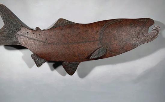Create an interesting focal point with a rusted-steel trout wall sculpture by artist Joseph DeRobertis.
