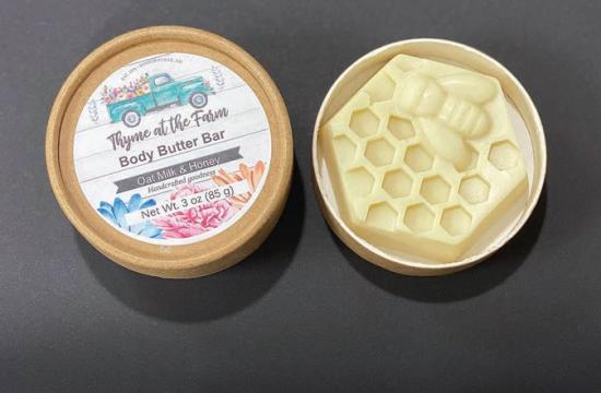 Moisturize your chapped hands and feet with this gorgeously soft body butter bar scented with oat milk and honey.
