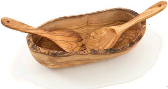 Make a statement on your table with a handsome, olive wood bowl. It’s hand-carved to show off its live-bark edge and distinctive grain patterns.
