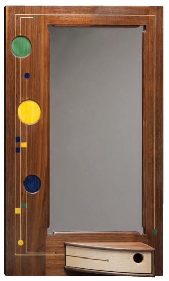 Add a pop of color and whimsy with a walnut and maple vanity mirror by New Hampshire Furniture Master Owain Harris.