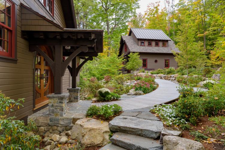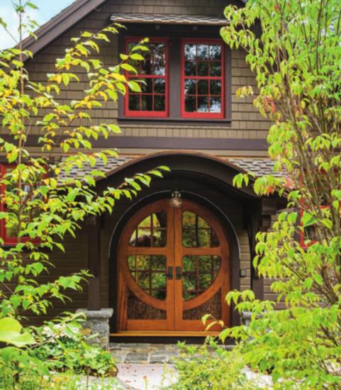 “In early meetings, both Bruce and Debbie were talking about this style of door: a rounded top, like a Hobbit door,” says Frost, president of White House Construction in Gilford. “That stuck with me, so I just started playing with it.”