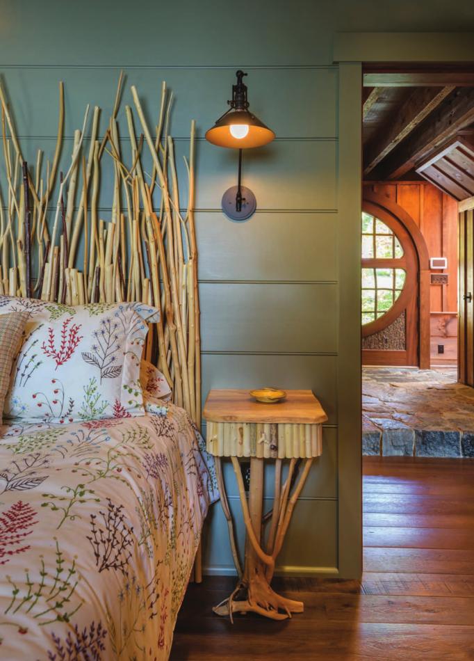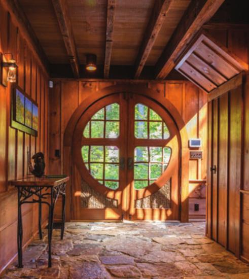 That vision reveals itself, literally, at the front door. A winding walkway weaves through a diverse collection of native plants and growth to a portal straight out of Bag End. With a rounded design and soft edges, the main entrance was inspired by J.R.R. Tolkien’s “Lord of the Rings” and looks exactly like something that would welcome visitors into a hobbit hole—which, as it was written in “The Hobbit,” means comfort.