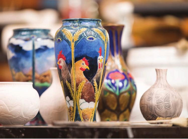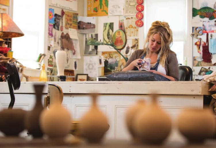 Potter Stephanie Young of Calmwater Designs Left: Young describes her work as “art nouveau, nature and inspiration with a smidgeon of sass.”