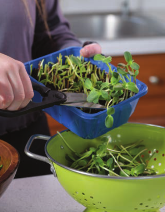 Your microgreen sprouts can be a garnish or an addition to other salad greens, adding flavor, color, texture and crunch. They are one of the easiest edibles you can grow and are always in season. NHH