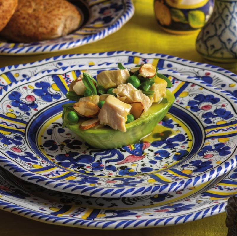 Turkey salad gets a flavor boost from peppery arugula, spring peas and citrus served in an avocado boat.