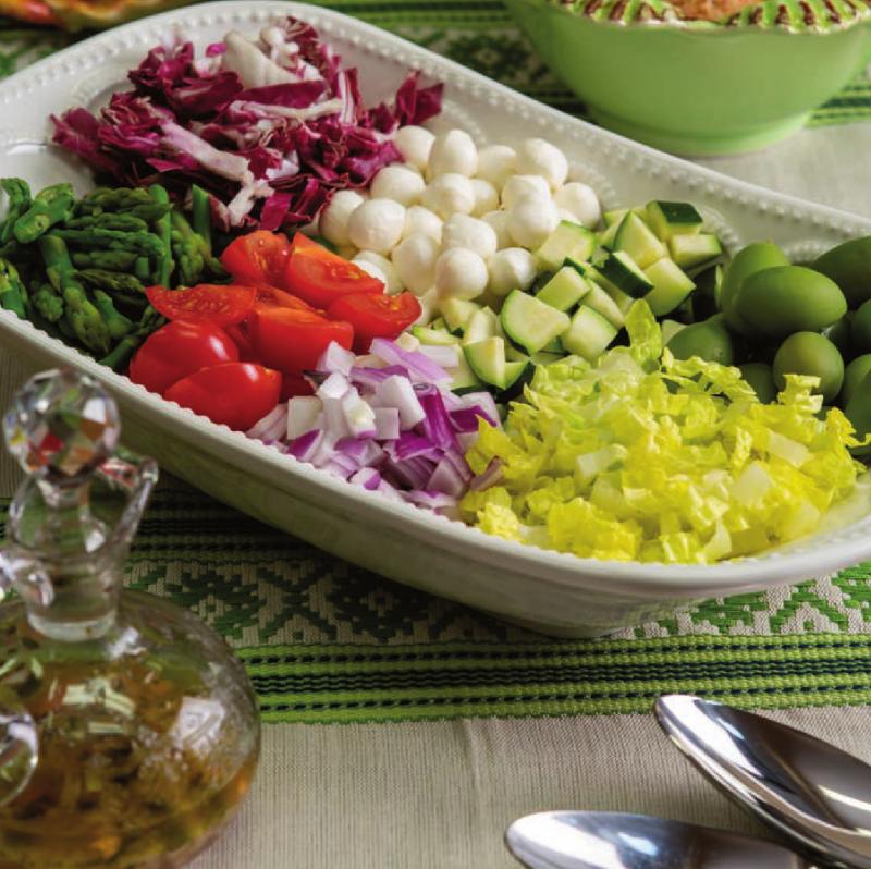 Salads should have a mix of color and texture. Rice, legumes, pasta and proteins—such as chicken, seafood, eggs, tofu, steak, cheese and nuts—make a salad a complete balanced meal.