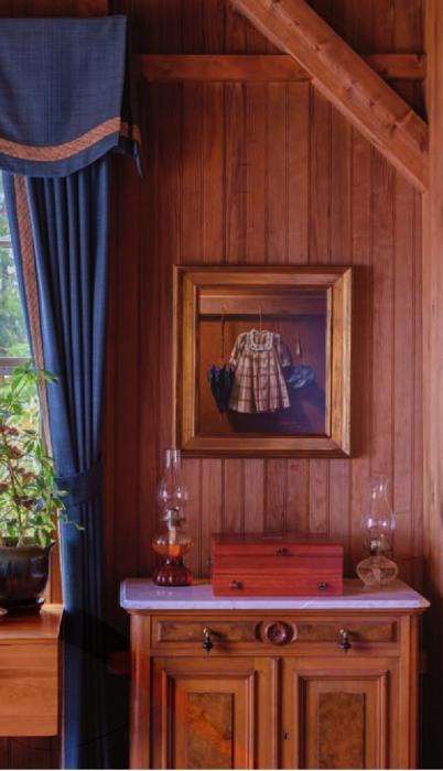 “Deb’s grandmother was the first female to get a pilot’s license in the state of Connecticut. She had a seaplane that she flew to Two Pines from Connecticut. We found a beautiful old wooden propeller that we suspected would’ve been hers. Deb and I decided the children’s room should be designed with her grandmother, Betty Coffin, in mind.