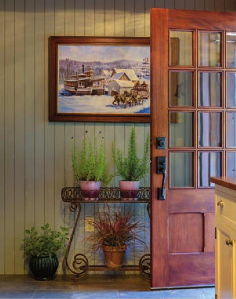The entire house was updated, and the foyer got a makeover—putting another important family heirloom frontand-center. Guests are now greeted at the front door by the original “Two Pines” sign.