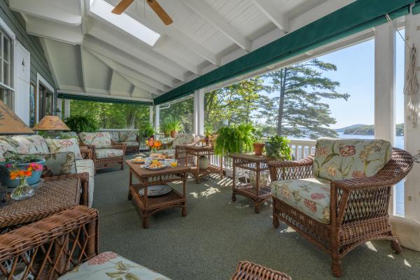 However, the stunning porch, which has a broad view of the lake and boathouse below, is her favorite warmweather spot.