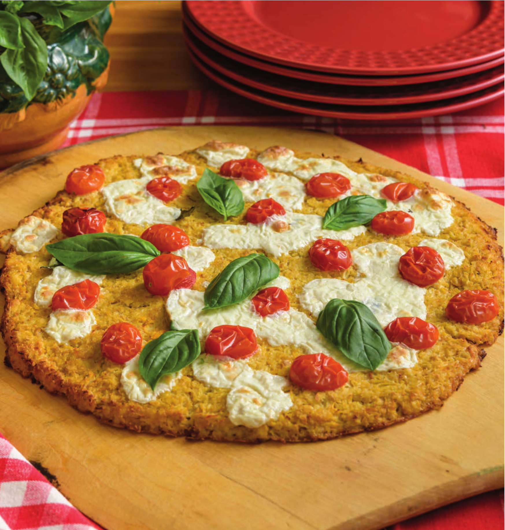 You won’t feel guilty having more than one slice of this delicious and unusual cauliflower pizza.
