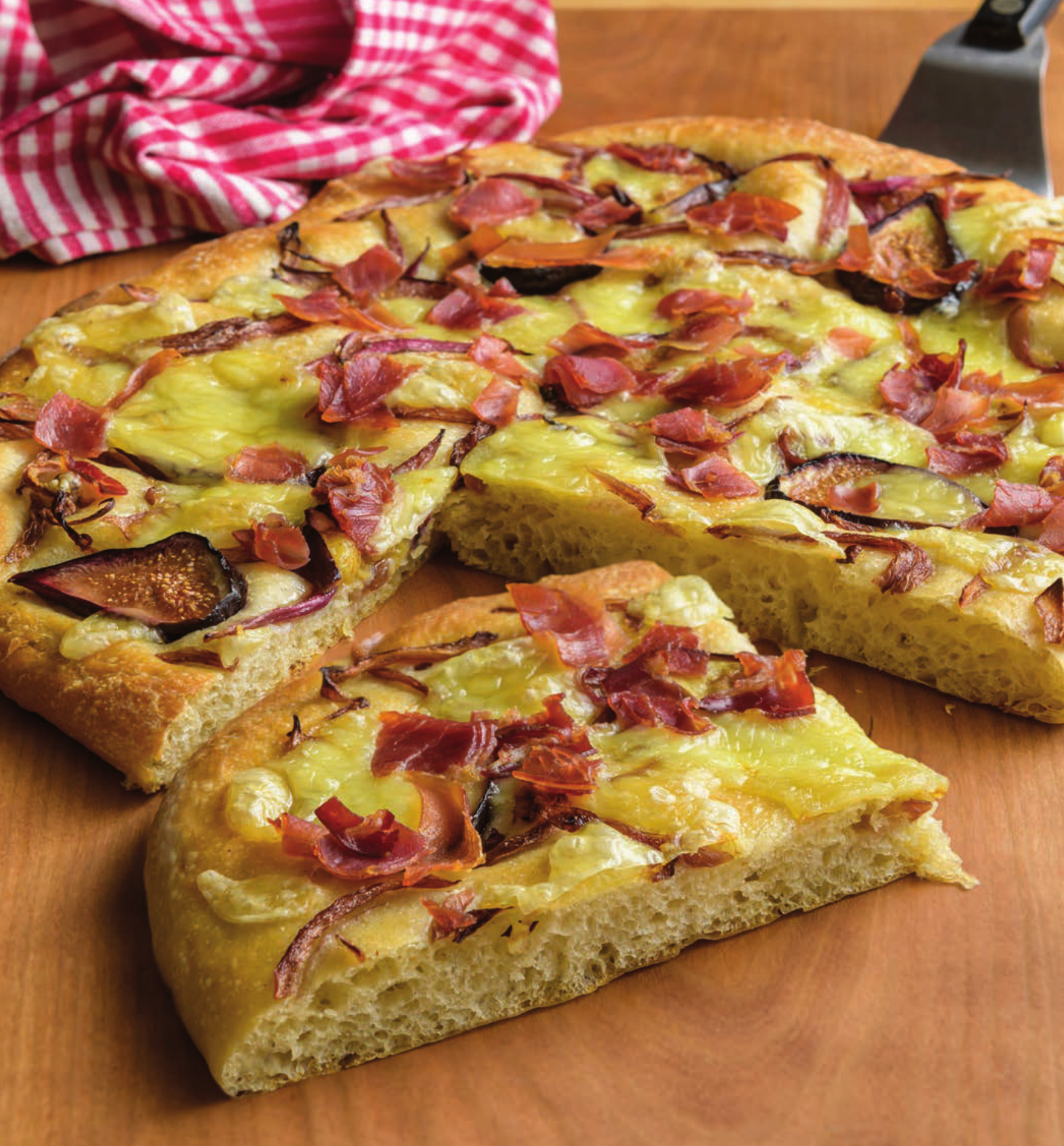 No time to make pizza dough? There are many good, commercially prepared options. Either make this pizza using the recipe for “Pizza Dough” on page 34 or buy a 1-pound commercially prepared dough. Either way, this pizza with fresh figs and prosciutto is a winner.