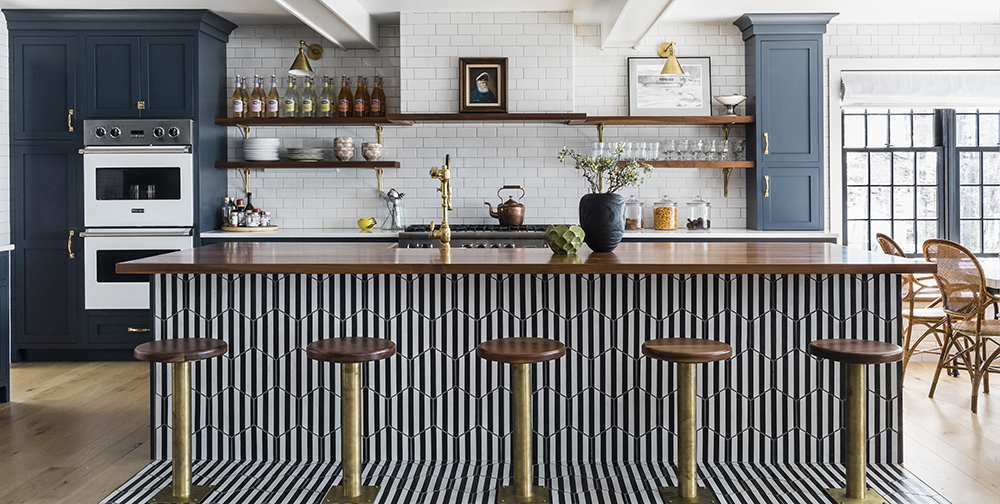The kitchen reflects Jackson’s “writer’s cabin” inspiration, and design elements from various eras—the ’40s, ’60s and ’70s—can be found in the delicate details and bold use of color.