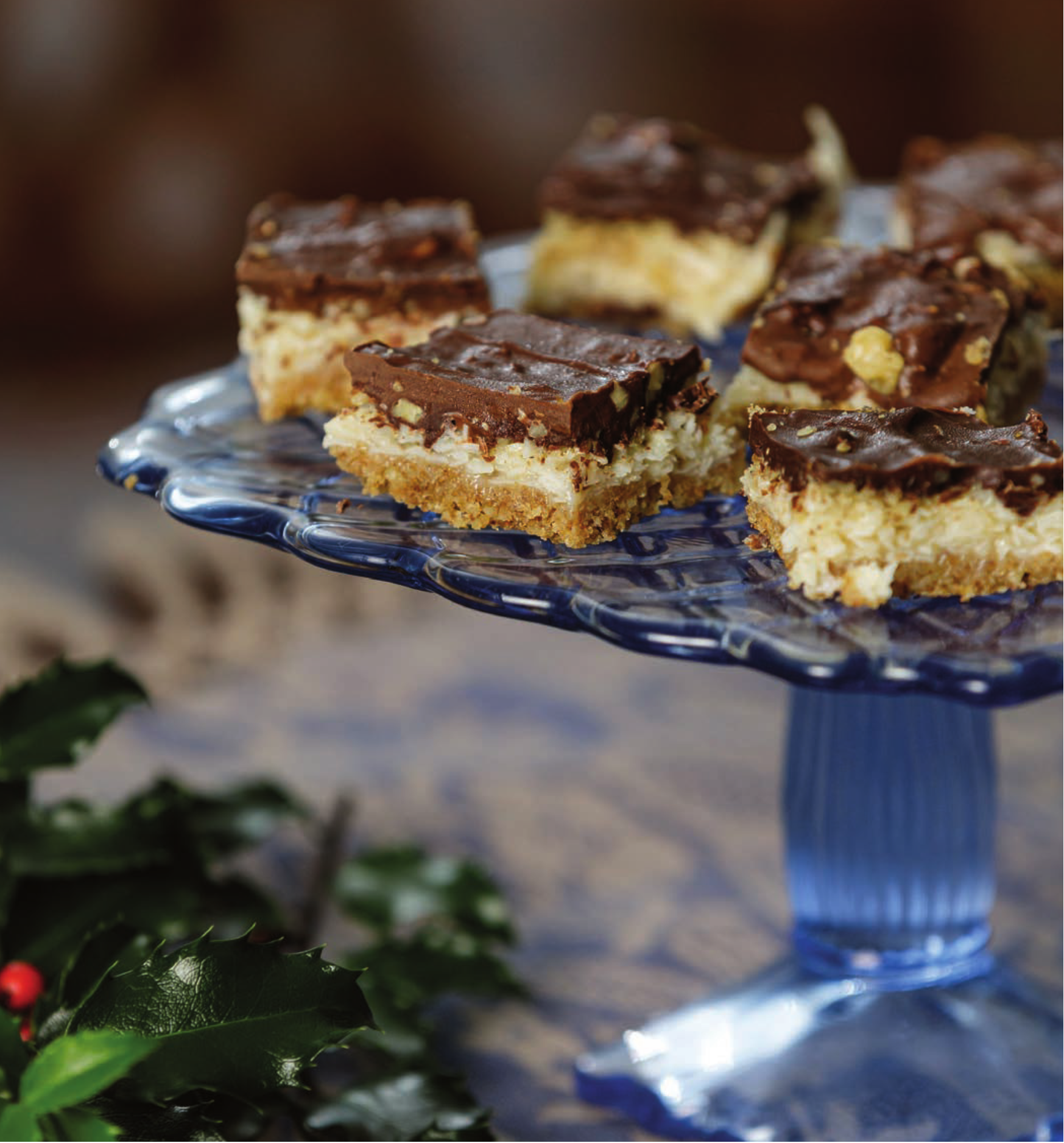 Sinfully rich, these chewy chocolate and coconut bars are perfect for holiday giving. Tuck some into a pretty tin or box along with the recipe for a really homey and appreciated gift.
