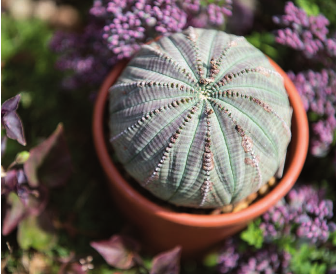 Some of Scarpa’s favorites are cacti, haworthia, euphorbias, lithops, small agaves and gasteria. “They are all really tough plants,” he says. “As long as you give them the right conditions, they are easy to grow. Small cacti, such as Mammillaria, are sure bloomers.”