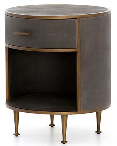 Emphasize sophisticated design by incorporating one-of-a-kind furnishings, like this round, mid-century nightstand. HOME | Design | Furnishings | Décor in Dover • homedesigndover.com