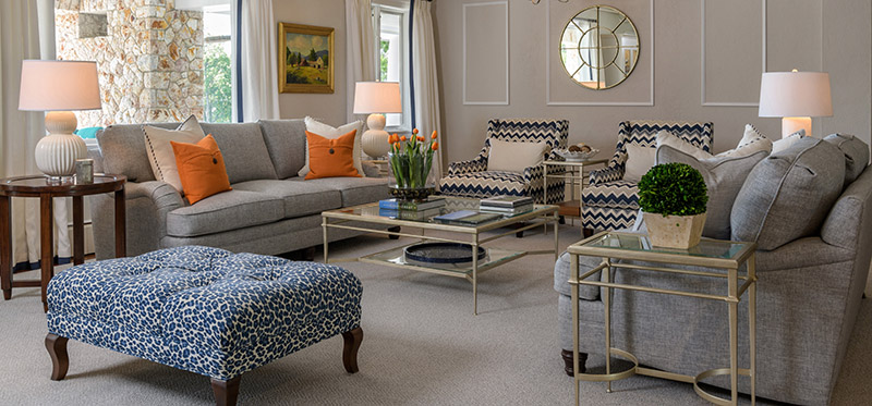 Blue and gray is a classic combination that won’t go out of style. Using easy-to-change throw pillows is a simple, impermanent way to incorporate on-trend colors.