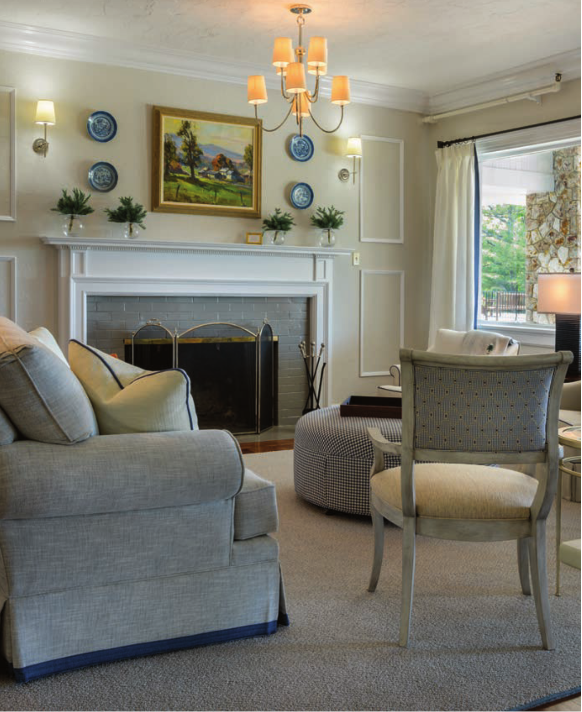 It seems she’s won over the Bald Peak members to this way of thinking. When working in places like country clubs, says Sheridan, she hopes for something “around a 50 to 60% approval rating,” as she calls it. “Then you know you’ve made half the people happy—you’ve done your job,” she adds. But the new cozy, homelike interior, the board told her, garnered more like a 90% approval rating. That, she says, made it “a very satisfying job.” NHH