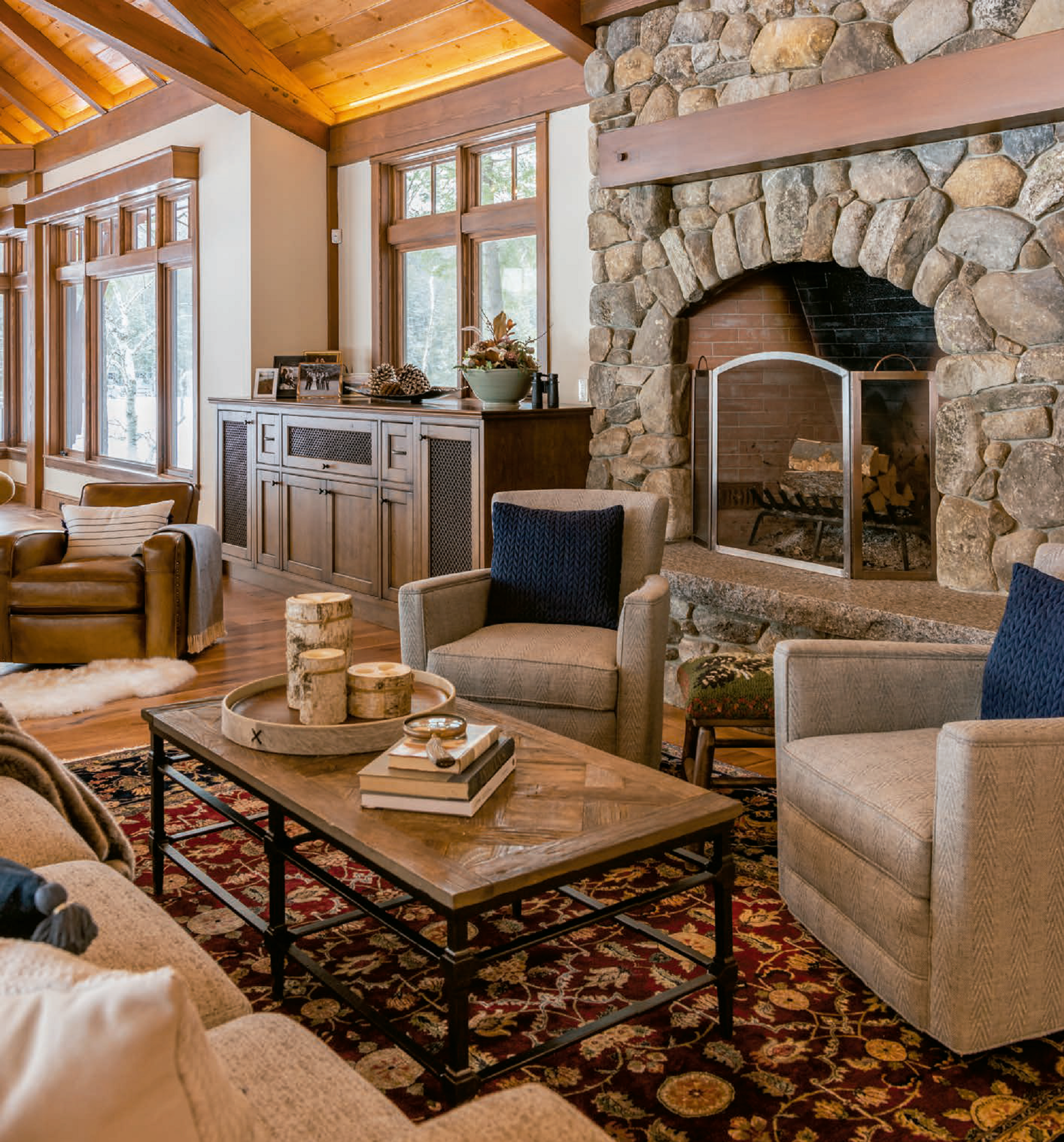 Studio Sage is a fullservice design firm specializing in the second-home market for high-end vacation homes, particularly those on Lake Sunapee and Lake Winnipesaukee. Although she’s been in business for just four years, Raymond is established as one of New Hampshire’s must-have designers.