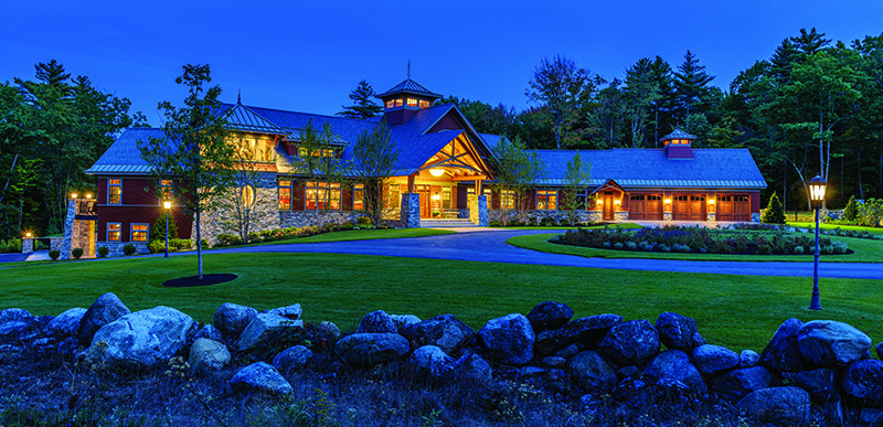 The resulting Adirondack-style house in Hopkinton, loaded with stonework and warm-toned wood, fits the bill.