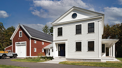 During the design phase, Anthony Giovanni, founder of MWV Homes, worked closely with John Cole Architect and energy consultant BuildingWorks LLC to develop details for the super-insulated building envelope, the large array of photo voltaic roof panels, the heating, cooling and ventilating systems, and the Greek Revival interior and exterior trim. During construction, Anthony was the on-site working manager, coordinating the efforts of his talented craftsmen and a wide variety of sub-contractors who have worked with him for years.