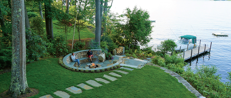 Belknap Landscape of Gilford, New Hampshire, is well-known for its creative, quality, hand-built outdoor living spaces. This example in Alton is no exception.