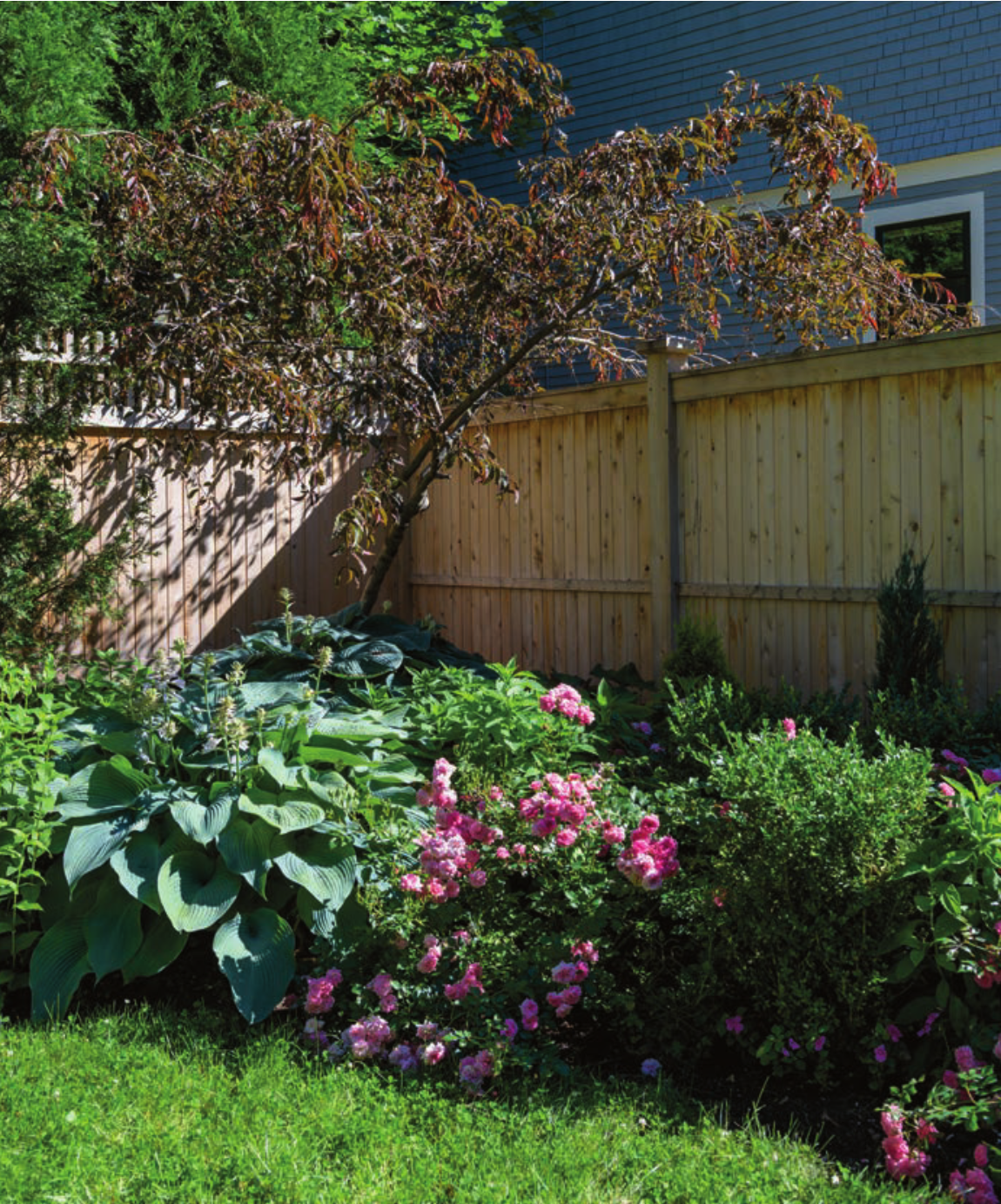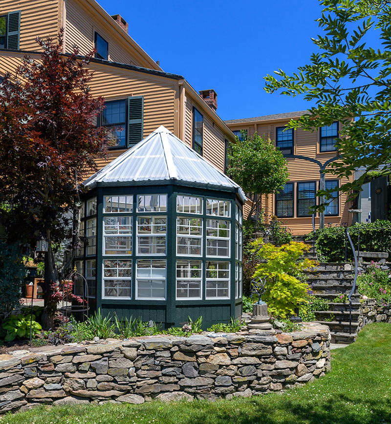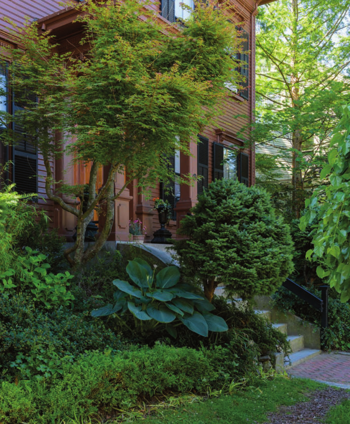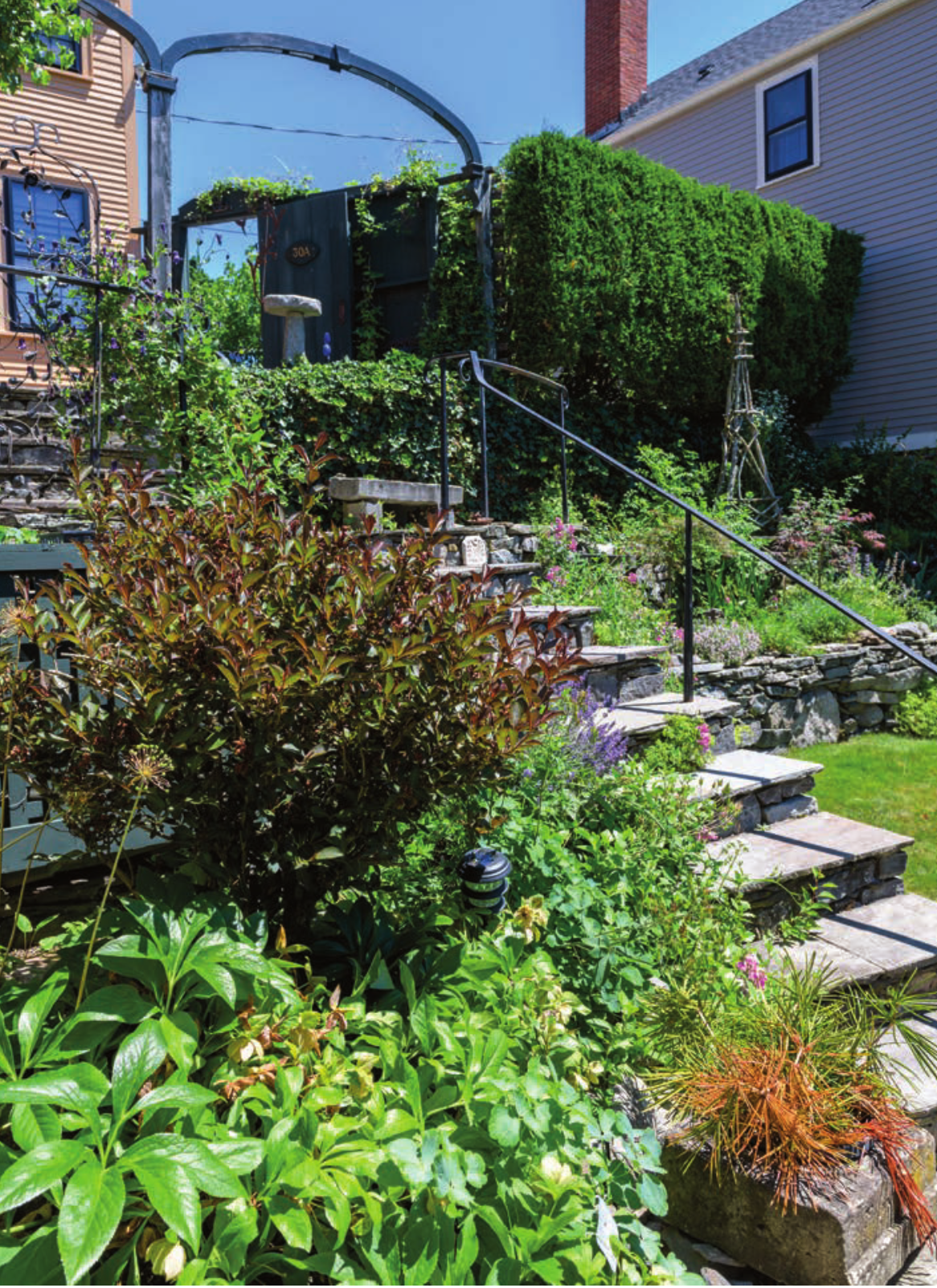 At 411 Middle Street is a grand Victorian home close to downtown Portsmouth that has been converted into affordable units. Owners Bob Vaccaro and Dan Rawling have formed an intentional community of like-minded individuals interested in planet-friendly living. The backyard serves many functions and fulfills the needs of the tenants and their guests—a lot to ask from an in-town property.