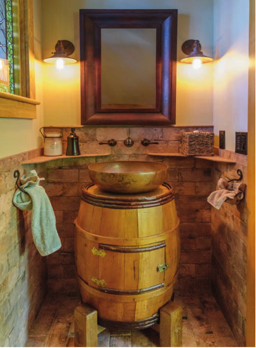 Wood from the original cabin has been repurposed, reused and reimagined in many spots around the home, including wainscoting in the kitchen, the 38 Special and the bathrooms.