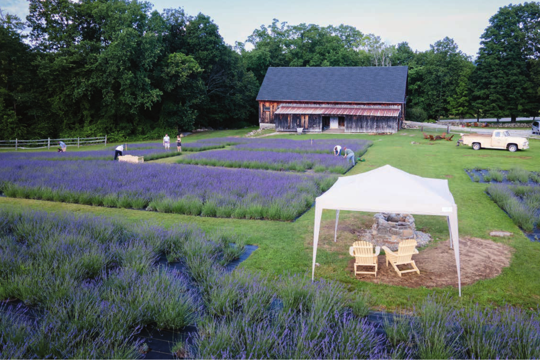 When they first moved to their 1790 farmhouse, they wanted to find a way to share the beauty of the 14-acre hillside location with others while honoring its agricultural past. “We wanted to do something that involved the whole family, not just now but as we all grow older,” says Mike. Looking toward the farm’s future, their eldest son is studying agricultural business at UNH. “The property lends itself to doing something beautiful in the field,” Missy says. “I wasn’t sure if growing lavender would work, but I was very optimistic since it incorporated so many elements I love,” she explains.